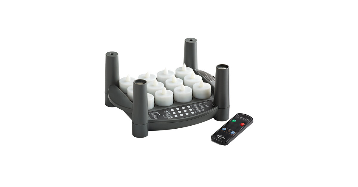 Sterno 60312 2 0 12 Piece Amber Rechargeable Flameless Tea Light Set With Easystack Charging Base And Timer With Remote